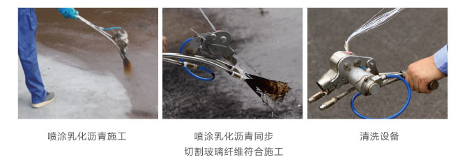 ● 噴涂乳化瀝青同步切割玻璃纖維復合施工,大大提高了防水層的抗拉強度,同時形成的是無接縫的整體彈性橡膠涂膜。